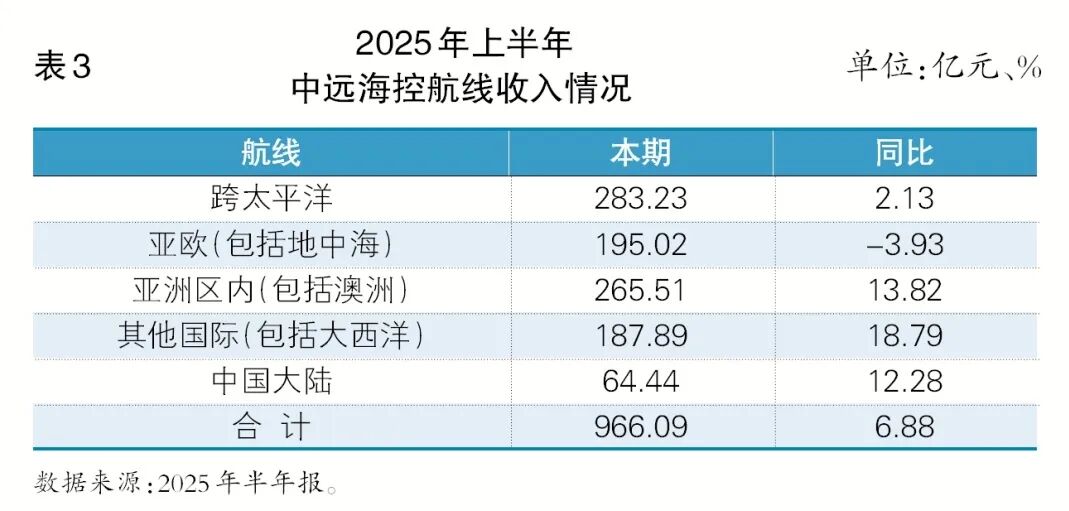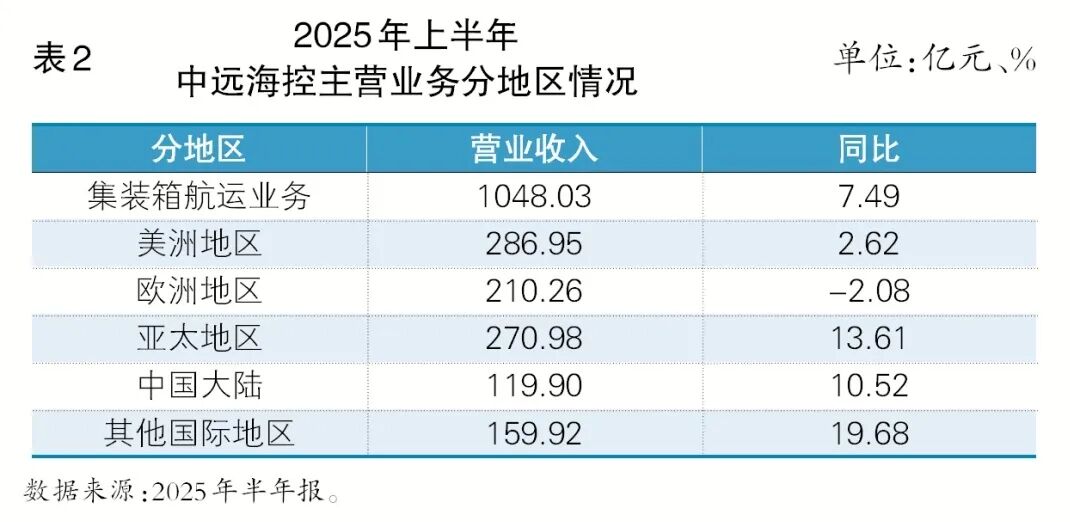 从区域维度切入,本年上半年中远海控在集装箱航运业务上的收入河山呈现出“好意思洲领涨,欧洲负增长”的澄清特征:好意思洲地区孝顺收入 286.95亿元,增幅2.62%,涌现高基数下的需求趋缓;亚太地区紧随后来,但增速迅猛,达到13.61%,成为拉动总收入增长的热切引擎;欧洲地区则出现2.08% 的负增长,成为唯独减弱的主要区域(见表2)。