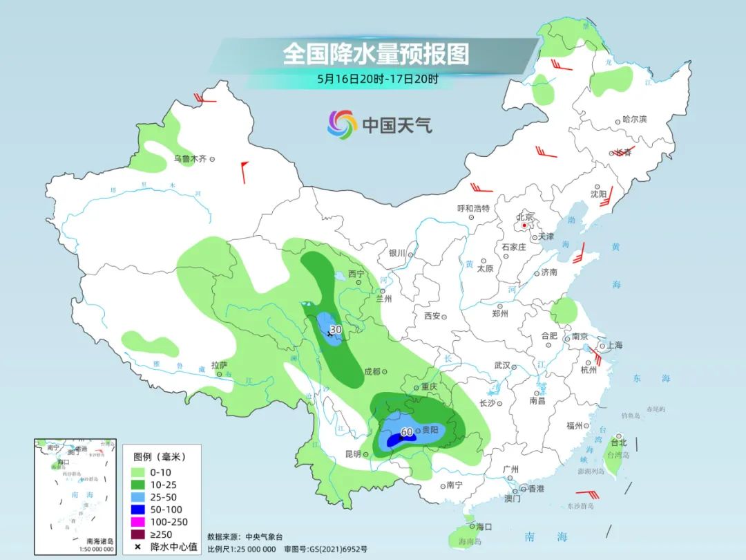 预测今天夜间到未来,降雨的中枢区域变化不大,仍然集聚在云南东部、广西西部、贵州等地,其中,云南东南部等地局地有暴雨。